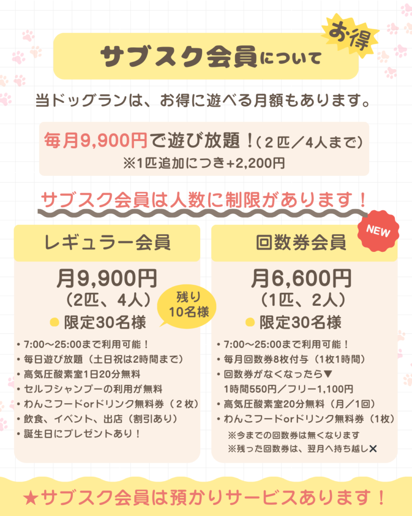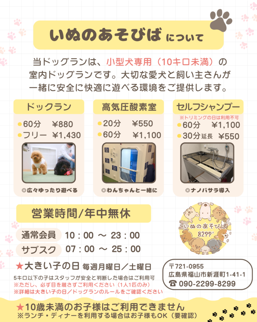 | ドッグラン(60分) | 880円 | 550円 |